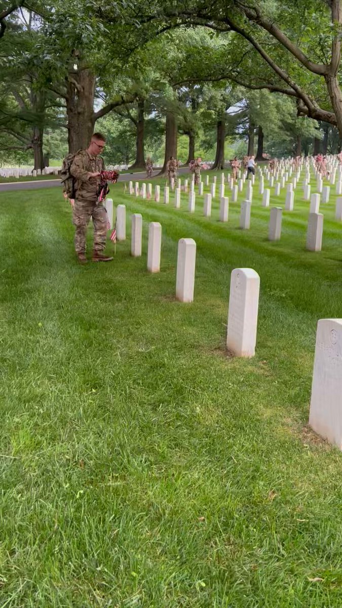 The statement provides information about the 'Flags In' tradition at Arlington National Cemetery, describing the actions of the Old Guard in placing American flags at headstones. It is a factual report about a ceremonial event and does not engage in substantive public issues, debates, or discussions that contribute to civic dialogue. Therefore, it does not constitute public discourse.