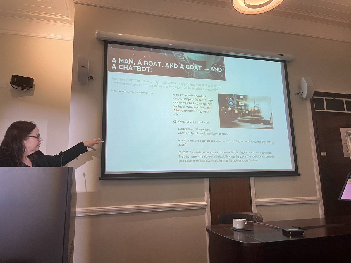 The statement engages in a discussion about the capabilities and limitations of AI, specifically ChatGPT, in solving puzzles. It references multiple individuals and their contributions to the discourse, indicating a collaborative and historical context. The tone is informative and aims to clarify the origins of an example used in the discussion.
