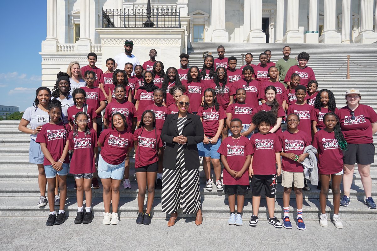 The statement is positive and welcoming, expressing joy in greeting students and educators from a specific district. It highlights a visit to Washington, DC, and includes images of the group during their visit. The tone is friendly and supportive, aiming to foster a sense of community and engagement.