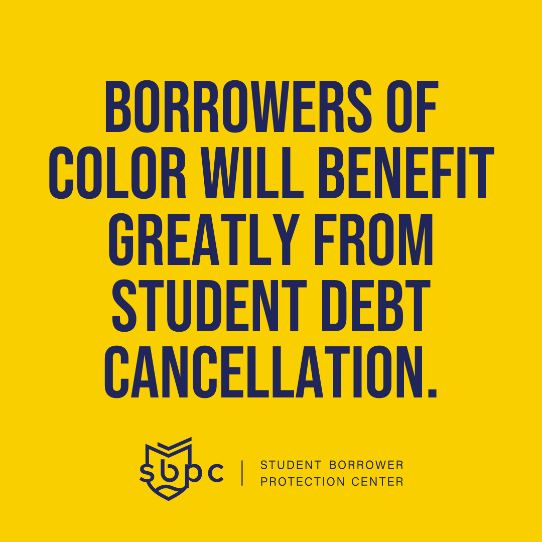 The statement and the accompanying image constitute public discourse as they address the societal issue of student debt and its disproportionate impact on borrowers of color. The statement advocates for student debt cancellation as a form of racial and economic justice, emphasizing the urgency and importance of this relief.