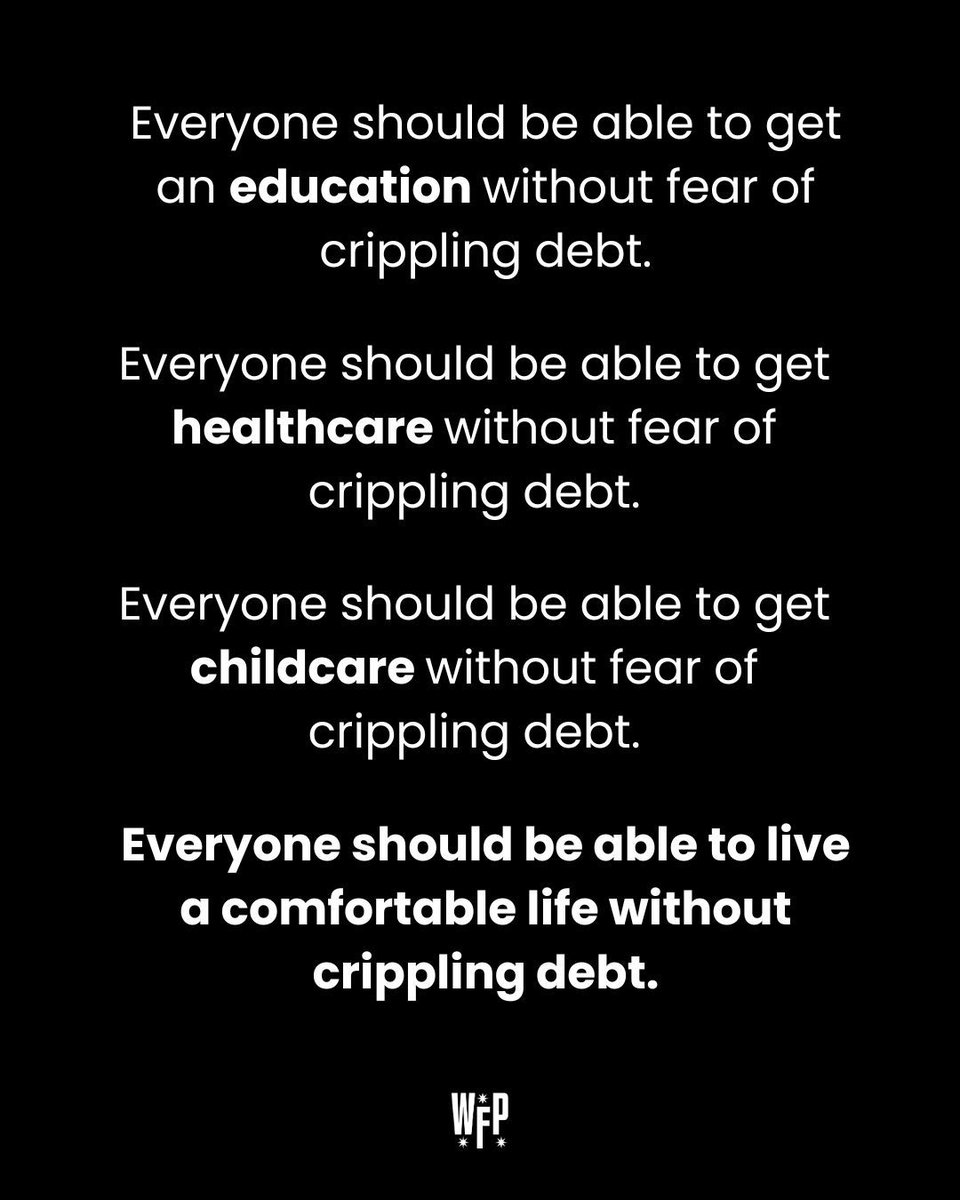 The statement and accompanying image address significant societal issues such as access to education, healthcare, childcare, and the overall cost of living without incurring crippling debt. The tone is empathetic and supportive, aiming to promote understanding and compassion for those struggling with financial burdens. The intent is to advocate for systemic changes to alleviate these burdens, which aligns with principles of promoting societal betterment and constructive dialogue.