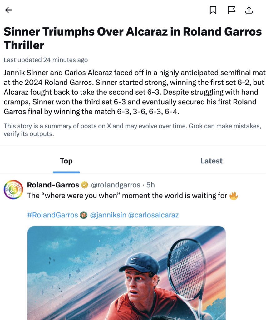 The statement and accompanying images discuss the division of human history into six stages and the role of AI in determining outcomes, using a tennis match as an example. The statement touches on the impact of AI on society and historical categorization, which can be considered public discourse.