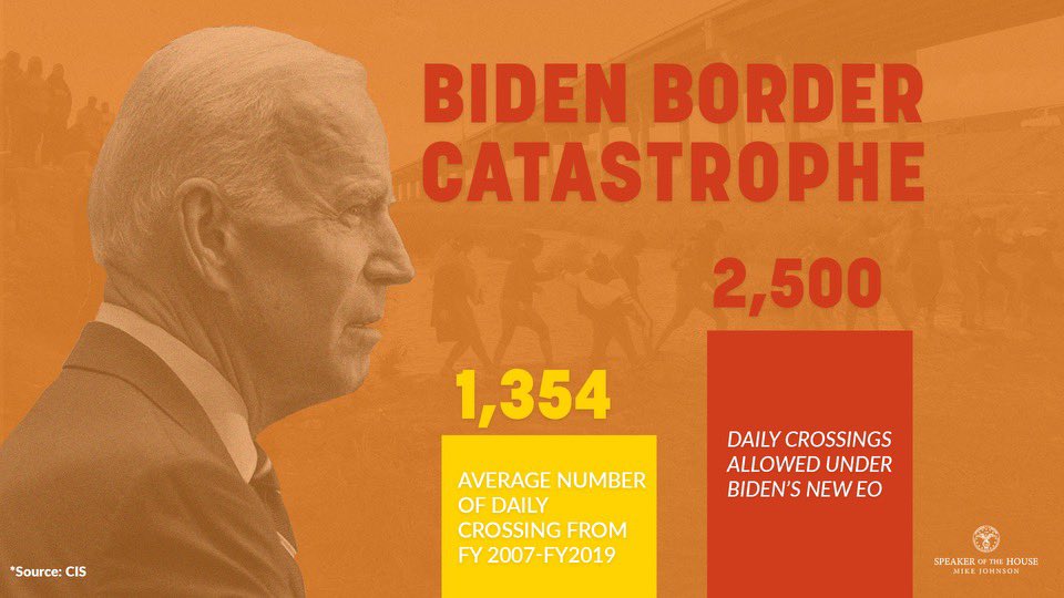 The statement and accompanying image criticize President Biden's handling of border security, specifically targeting his Executive Order. The tone is critical and the intent is to highlight perceived failures in border management. The content is focused on comparing past and current border crossing statistics to argue that the situation has worsened under Biden's administration.