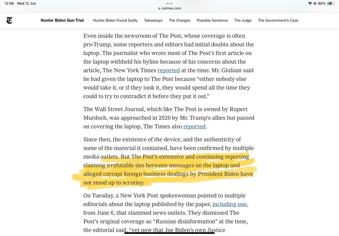The statement criticizes The New York Times for allegedly casting aspersions on a reporter and a publication, while also pointing out an inconsistency in their reporting. The tone is accusatory and demands accountability from the publication.