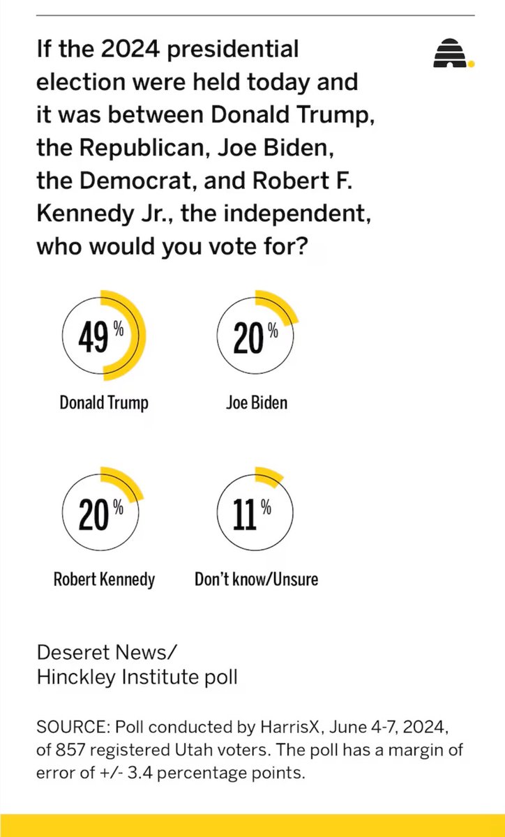 The statement and accompanying image engage in public discourse by discussing polling data related to the 2024 presidential election. The tone is celebratory and promotional, highlighting a candidate's progress in the polls.