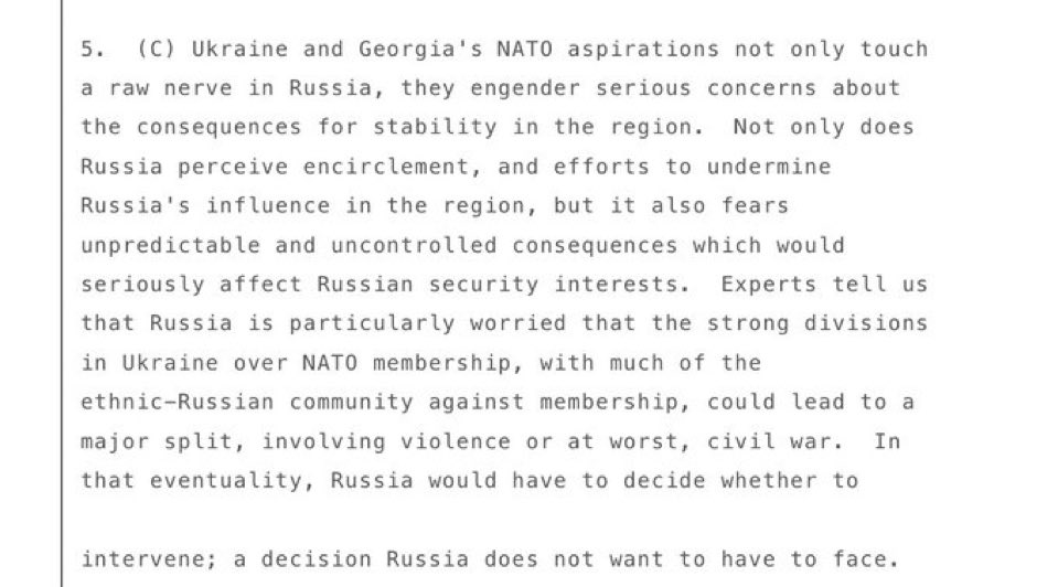The statement and accompanying image engage in public discourse by discussing a significant geopolitical issue: the potential consequences of Ukraine and Georgia joining NATO, as highlighted in a 2008 memo by the current CIA Director William Burns. The statement credits Julian Assange for revealing this information, suggesting that without his actions, the public would not be aware of these concerns. The tone is critical and aims to inform the public about the potential risks and historical context of NATO expansion.