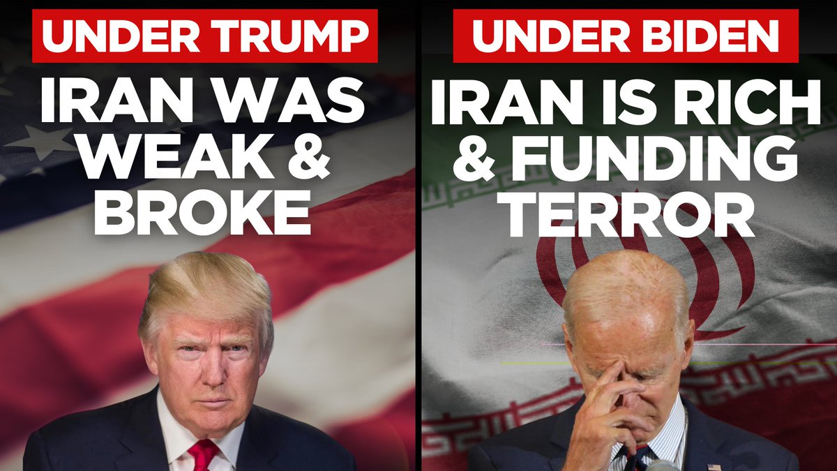 The statement and accompanying image engage in public discourse by addressing the foreign policy and economic conditions of Iran under two different U.S. administrations. The tone is highly critical and partisan, aiming to contrast the perceived effectiveness of the two administrations. The content is provocative and likely intended to influence public opinion on U.S. foreign policy and leadership.