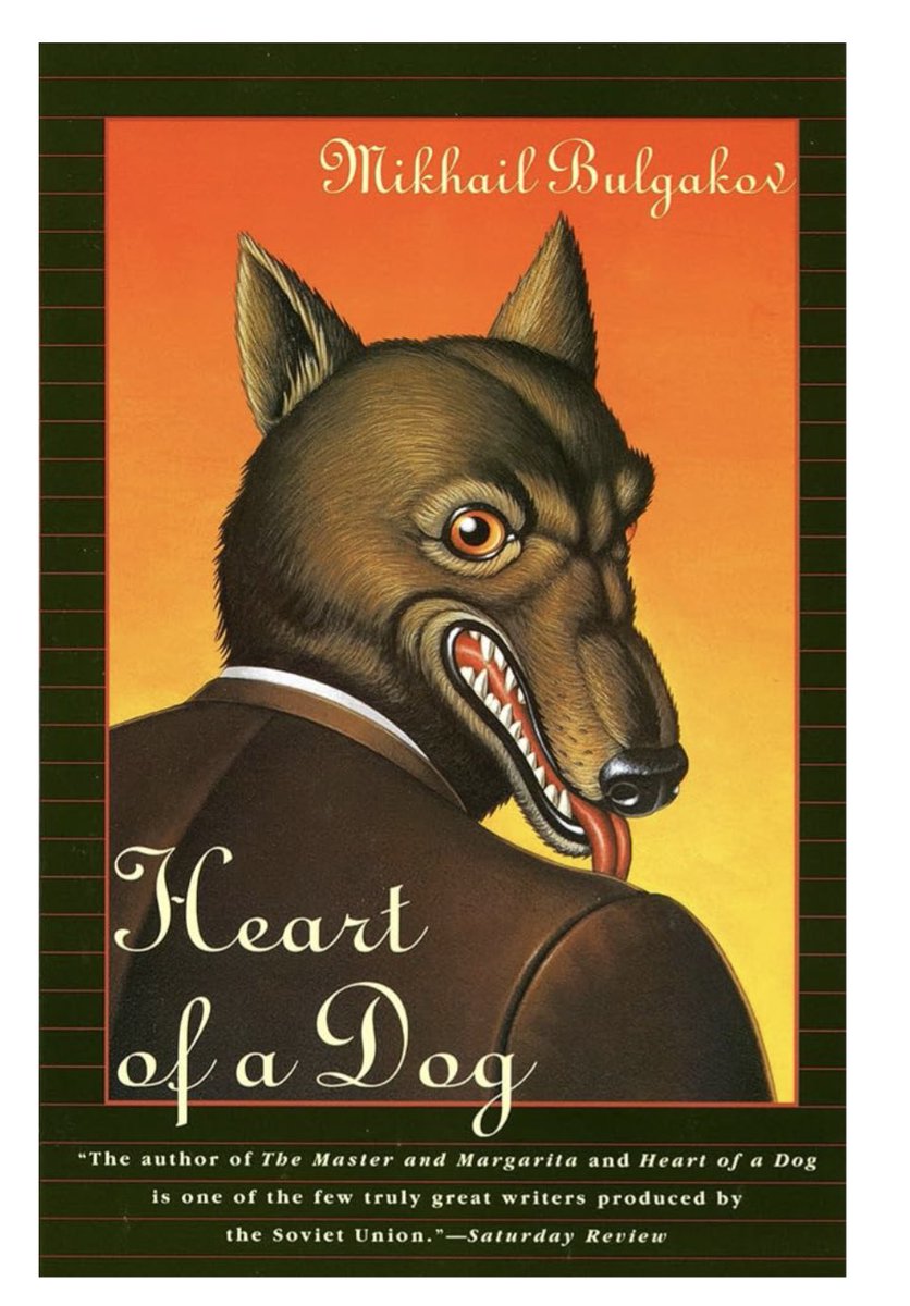 The statement is a recommendation and discussion of a literary work, specifically 'Heart of a Dog' by Mikhail Bulgakov. It provides information about the book and its translation, and includes a link to a publisher's website for further details. The tone is informative and enthusiastic, aimed at sharing a literary recommendation within a conversation about the author's works.