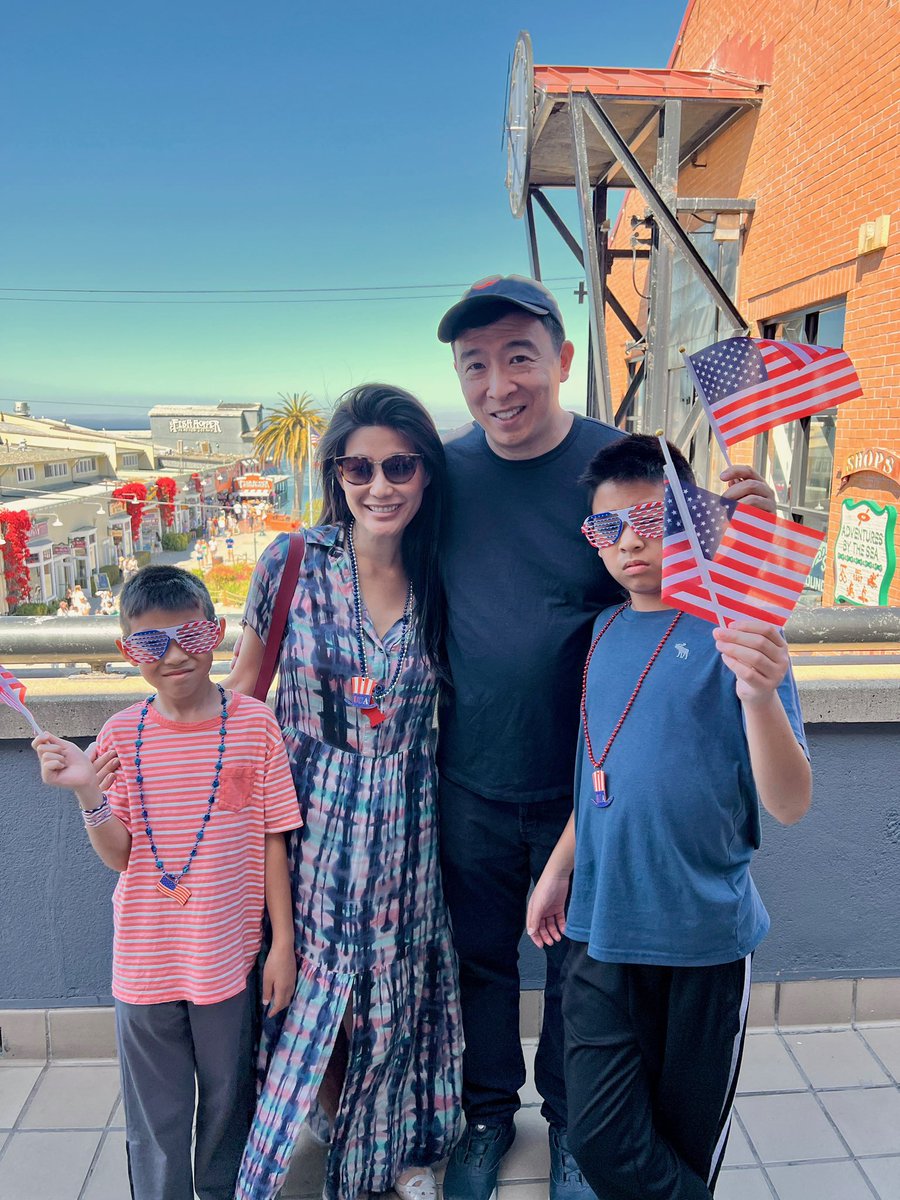 The statement is a celebratory message for Independence Day, accompanied by a family photo. It is lighthearted and intended to spread joy and patriotism. It does not engage in substantive public issues or debates, and therefore does not constitute public discourse.