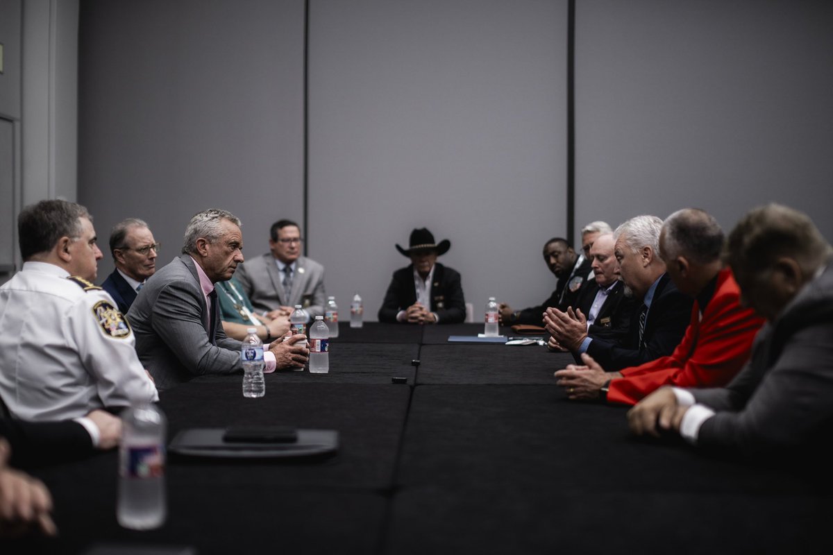 The statement and accompanying images reflect a public engagement at the National Sheriffs’ Association convention, addressing significant societal issues such as border security, immigration policy, police reform, drug addiction, and mental health crises. The tone is professional and informative, aiming to highlight the importance of these issues and the speaker's involvement in discussing them.