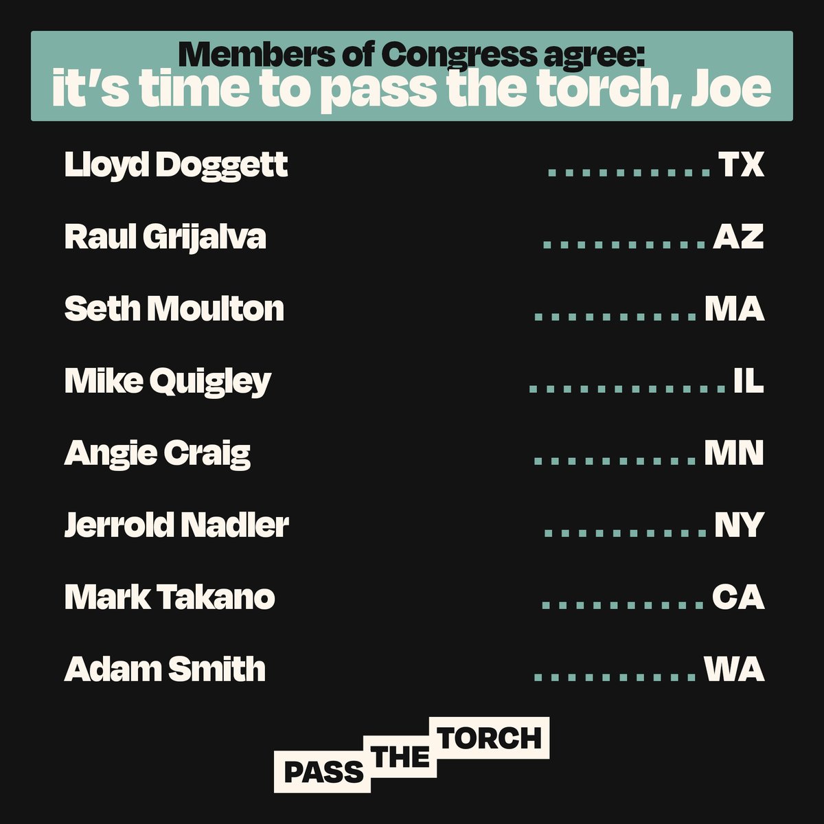 The statement and accompanying image constitute public discourse as they engage with a political issue, specifically advocating for a change in leadership within the Democratic Party. The tone is assertive and urgent, aiming to mobilize support for the petition. The content suggests that President Biden should pass the leadership torch to ensure a stronger ticket against Donald Trump in future elections.