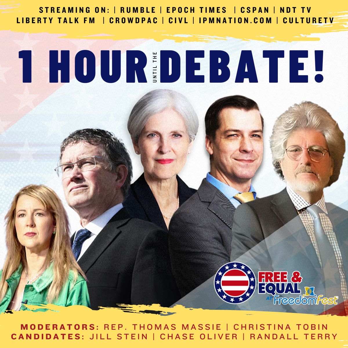 The statement is promotional in nature, announcing an upcoming presidential debate and encouraging donations. It does not engage substantively with public issues, policies, or societal concerns, and therefore does not constitute public discourse.