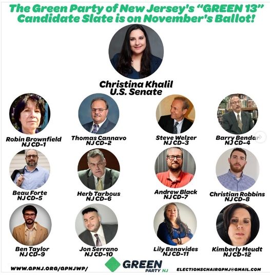 The statement expresses support for a political figure and a slate of candidates, highlighting their perceived selflessness and leadership. It also promotes an upcoming debate and the candidates' readiness to engage with their opponents. The tone is positive and promotional, aiming to rally support for the Green Party of New Jersey's candidates.