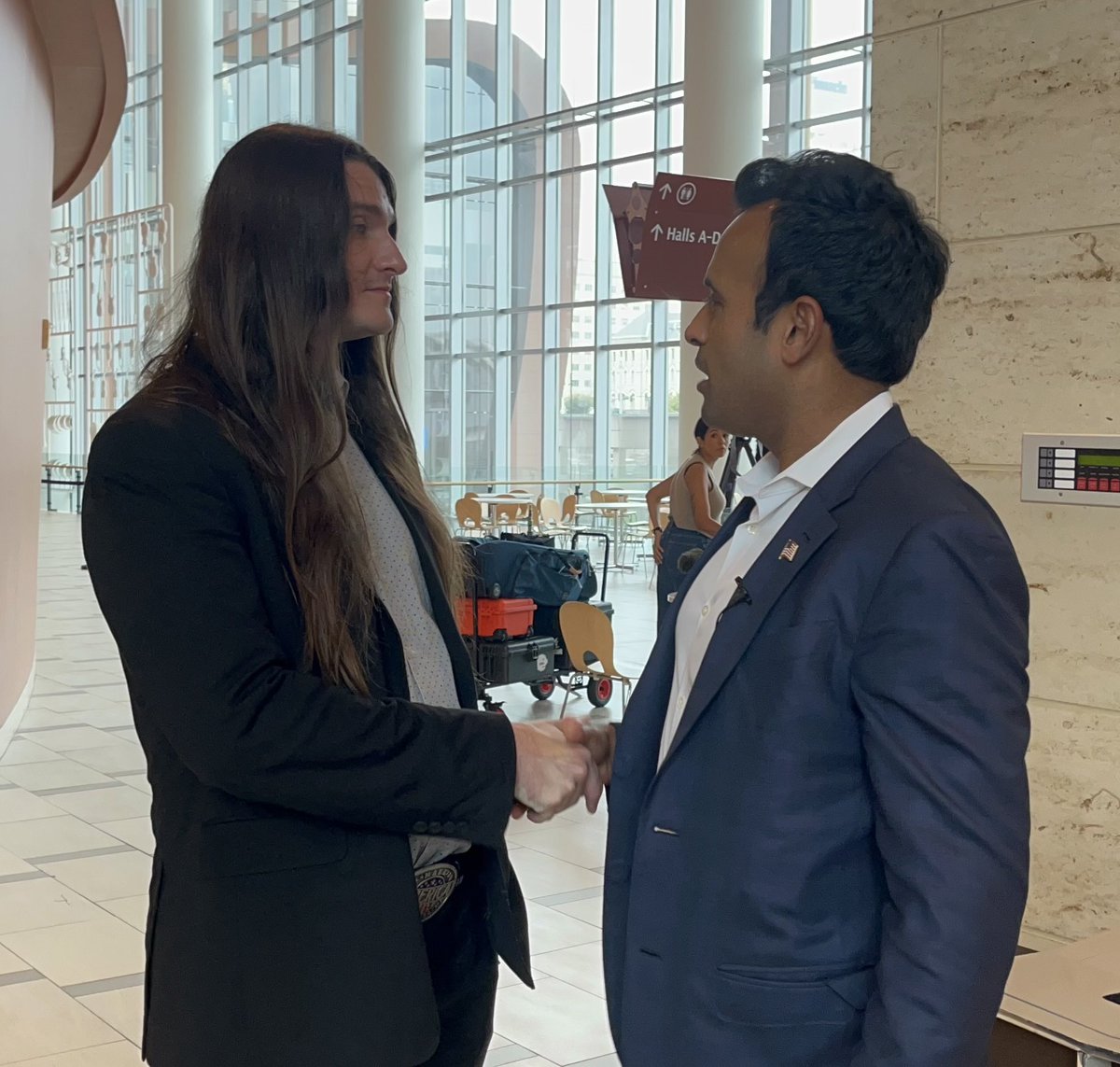 The statement and the accompanying conversation involve a political endorsement and a commitment to support a specific candidate in an election. This constitutes public discourse as it engages with public issues and political processes.