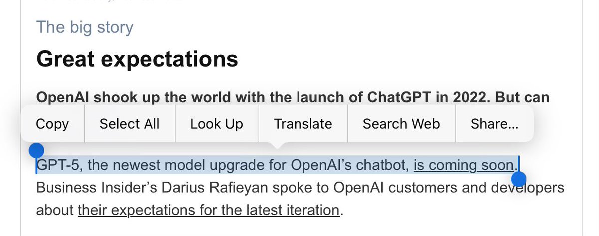 The statement is dismissive and somewhat mocking towards Business Insider's prediction about the release of GPT-5. It does not engage in a substantive discussion about the topic and instead focuses on ridiculing the publication's forecast.