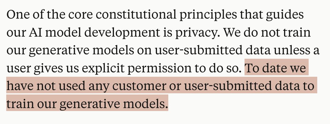 The statement expresses strong support for Anthropic's policy of not using customer data for training AI models without explicit permission and urges others to adopt similar standards. It also warns against using vendors that do not match this policy, implying that such vendors may misuse personal data. The tone is assertive and cautionary, aiming to influence public behavior and industry standards regarding data privacy.