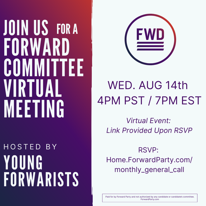The statement and accompanying image serve as an invitation to a political meeting hosted by the Young Forwardists. The intent is to encourage participation in a virtual event that aims to expand attendees' political networks and opportunities. The tone is neutral and promotional, focusing on engagement and participation in political activities.