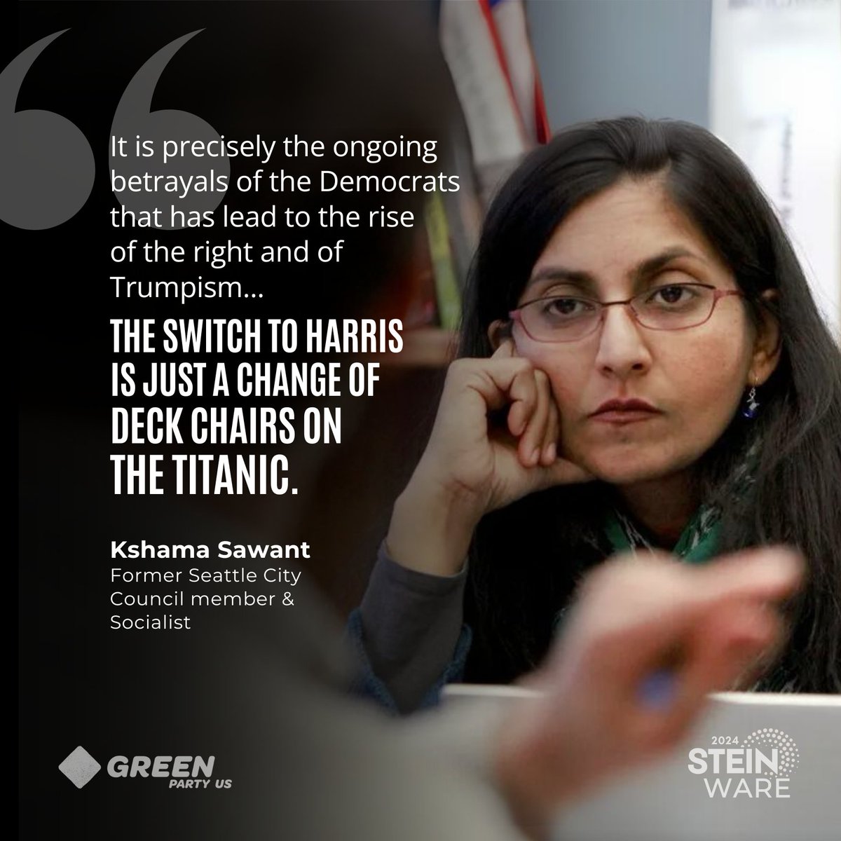 The statement and accompanying image constitute public discourse as they engage with political issues and critique the Democratic Party's actions and their impact on the rise of right-wing politics and Trumpism. The statement also comments on the political significance of Kamala Harris's role, suggesting it is merely a superficial change.