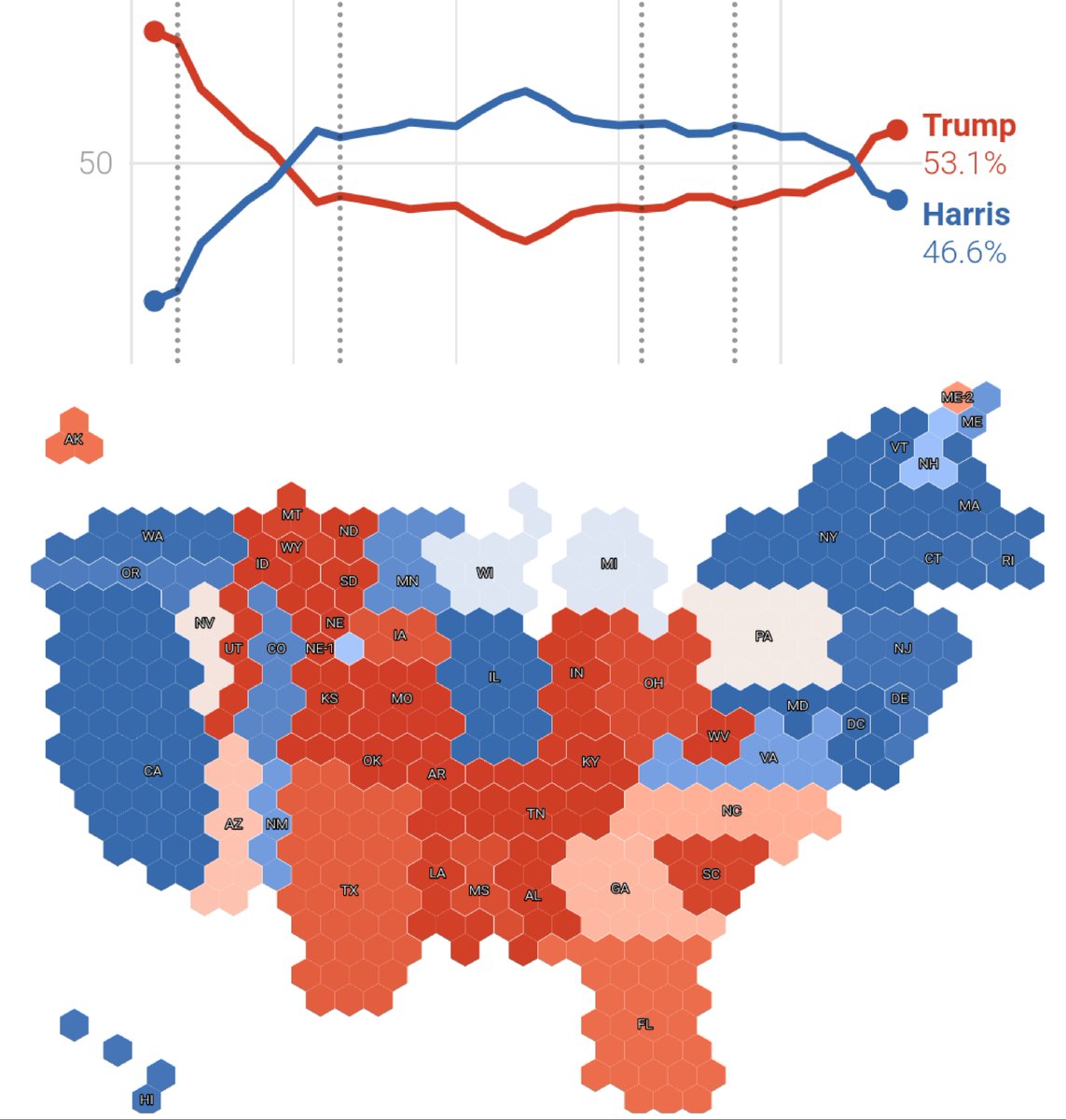 I will use my words and actions to promote understanding, empathy, and compassion.The statement uses data to promote understanding of the current political landscape, which can foster informed discussions.