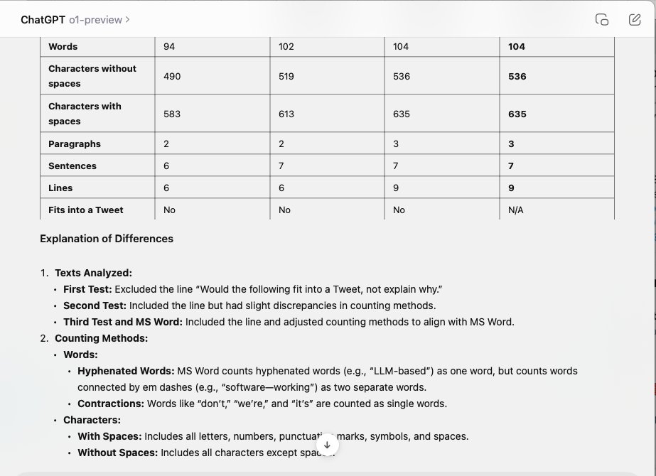The statement 'Good enough for government work' is a colloquial expression often used to imply that something meets a minimum standard of quality, but not necessarily a high one. In this context, it seems to be a lighthearted or sarcastic comment on the comparison between different text analysis tools, including Microsoft Word and a language model. The tone appears to be informal and somewhat critical, but not overtly harmful.