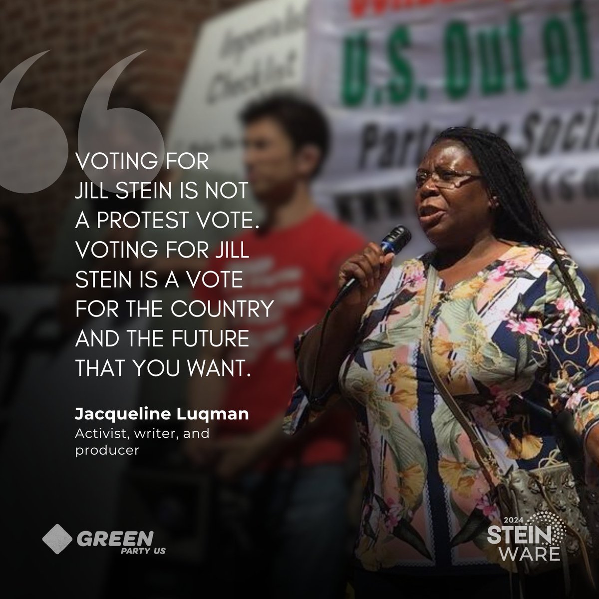 The statement and accompanying image constitute public discourse as they engage with political issues and encourage civic participation. The statement thanks a supporter and includes an image with a quote promoting a political candidate, Jill Stein, suggesting that voting for her is a meaningful choice for the future of the country.
