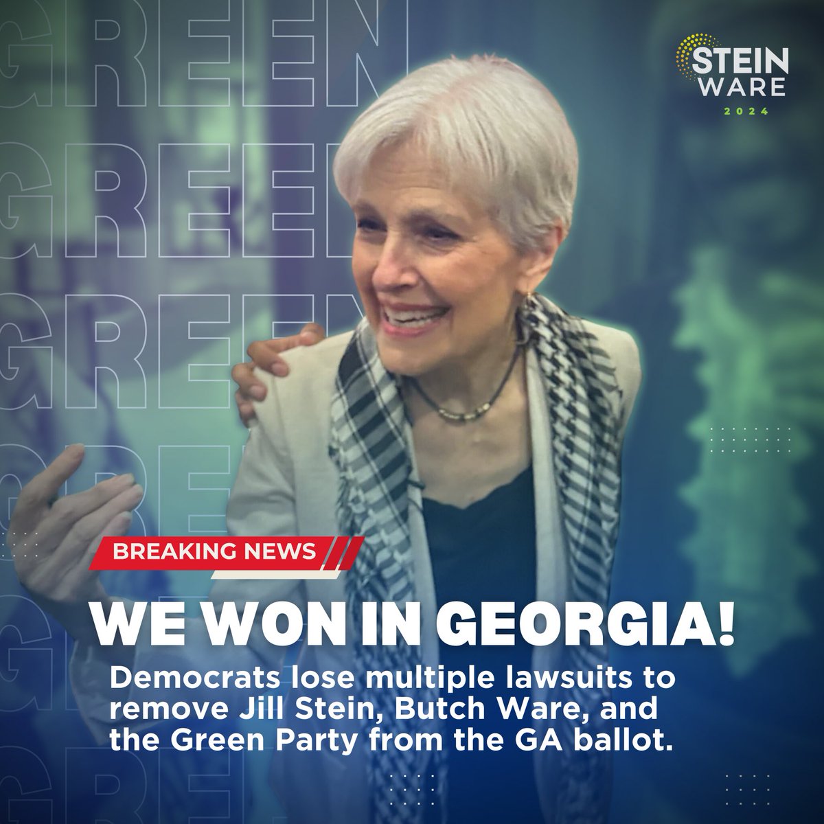 The statement constitutes public discourse as it engages with political issues, specifically the legal battles between the Democratic Party and the Green Party, and the broader implications for electoral politics. The tone is confrontational and accusatory, suggesting a coordinated effort by the Democratic Party to undermine the Green Party. The statement also calls for action by encouraging support for the Green Party's campaign efforts.