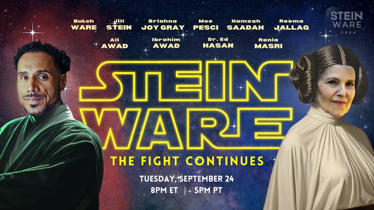 The statement and accompanying image promote a virtual rally featuring various speakers, including Jill Stein and Butch Ware, with a theme of rebellion against empire. The tone is promotional and aims to gather support for a cause, likely related to political activism or a campaign.
