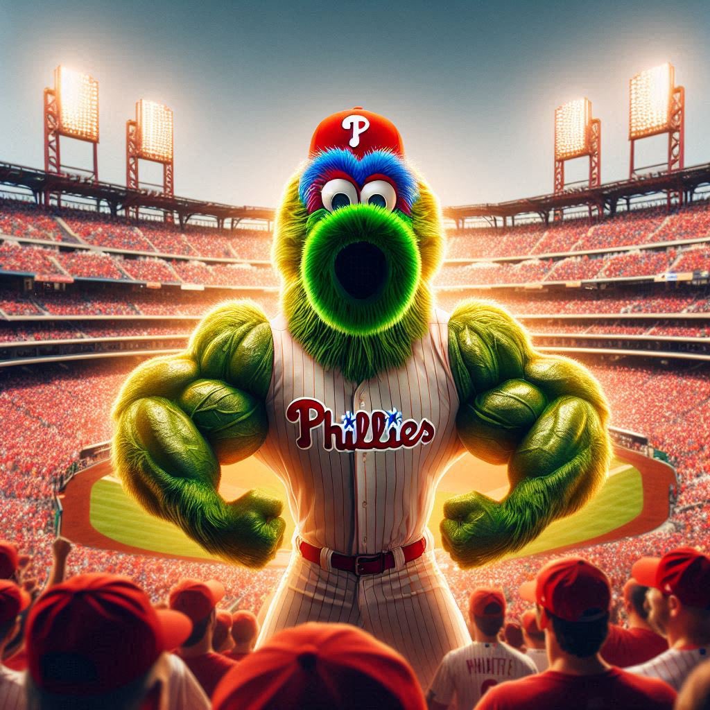 The statement is celebratory in nature, expressing excitement over the Philadelphia Phillies clinching the NL East title. It does not engage in substantive public issues, debates, or discussions that contribute to civic dialogue. The accompanying image of the Phillies mascot in a triumphant pose reinforces the celebratory tone.