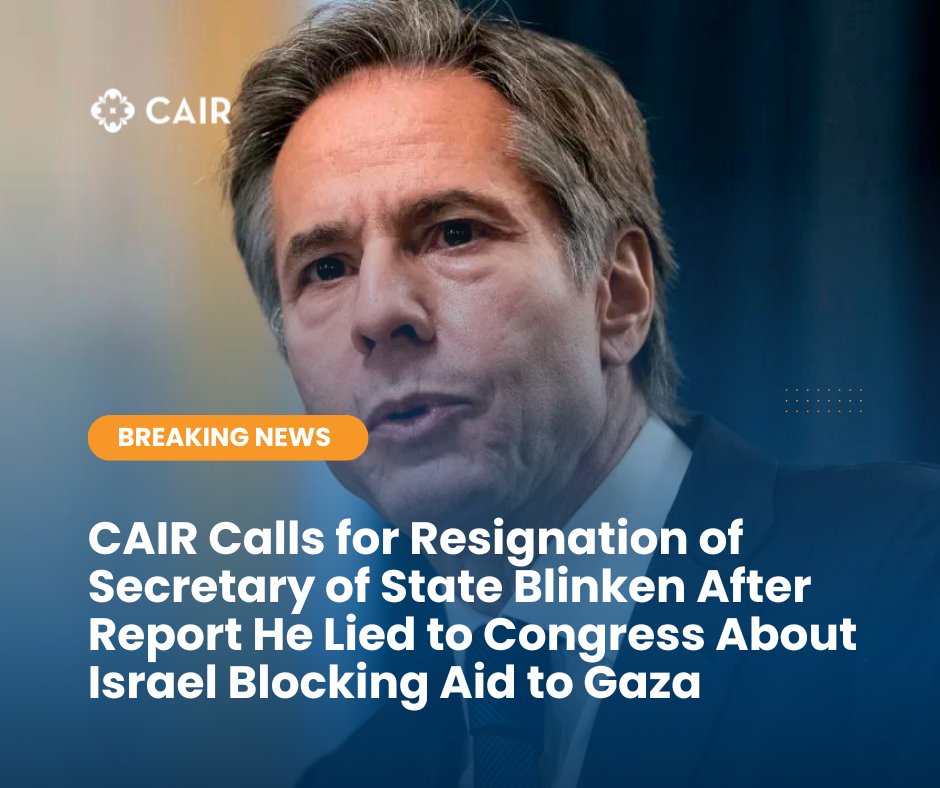 The statement and accompanying image call for the resignation of a public official based on allegations of misleading Congress about a significant international issue. The tone is serious and accusatory, aiming to hold the official accountable for purported actions that violate U.S. law. The statement engages in public discourse by addressing a matter of public concern and policy.