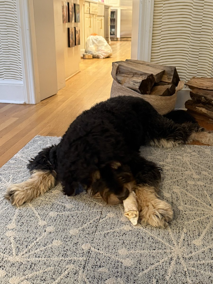 The statement '🫎 MOOSE' accompanied by an image of a dog does not constitute public discourse. It appears to be a lighthearted or humorous comment, possibly referring to the dog in the image in a playful manner.