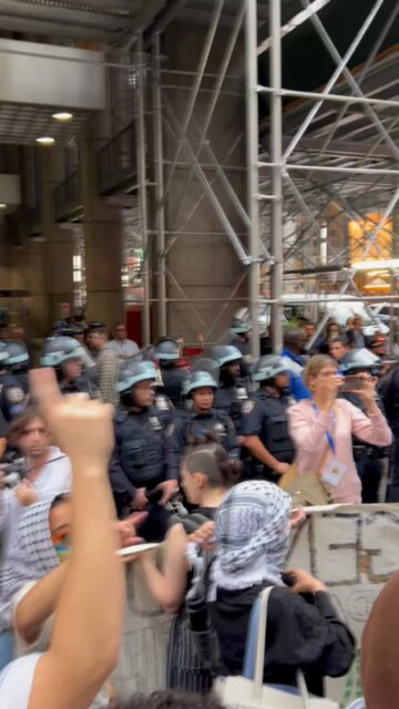 The statement 'ONE SOLUTION‼️ REVOLUTION🇵🇸 STARTING NOW AT PERSHING SQ' appears to be a call to action for a public demonstration or movement, potentially related to a political or social issue concerning Palestine. The use of strong language like 'REVOLUTION' suggests a significant engagement with a public issue, making it a part of public discourse. The link to a website further indicates an attempt to mobilize or inform the public.