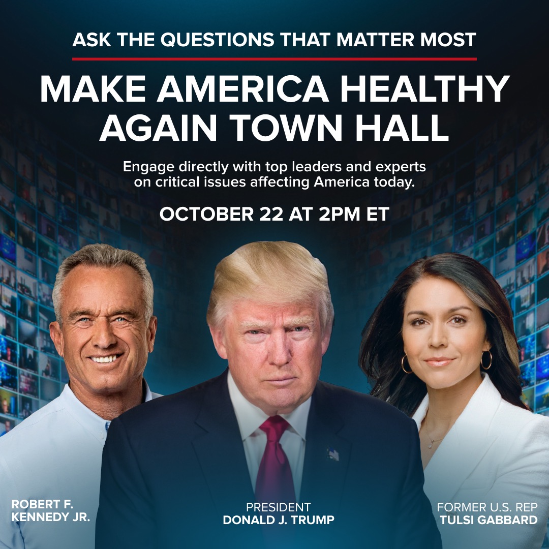 The statement promotes a virtual town hall event focused on addressing the chronic disease epidemic in America, featuring public figures and health experts. It aims to engage the public in a discussion on health issues, which constitutes public discourse.