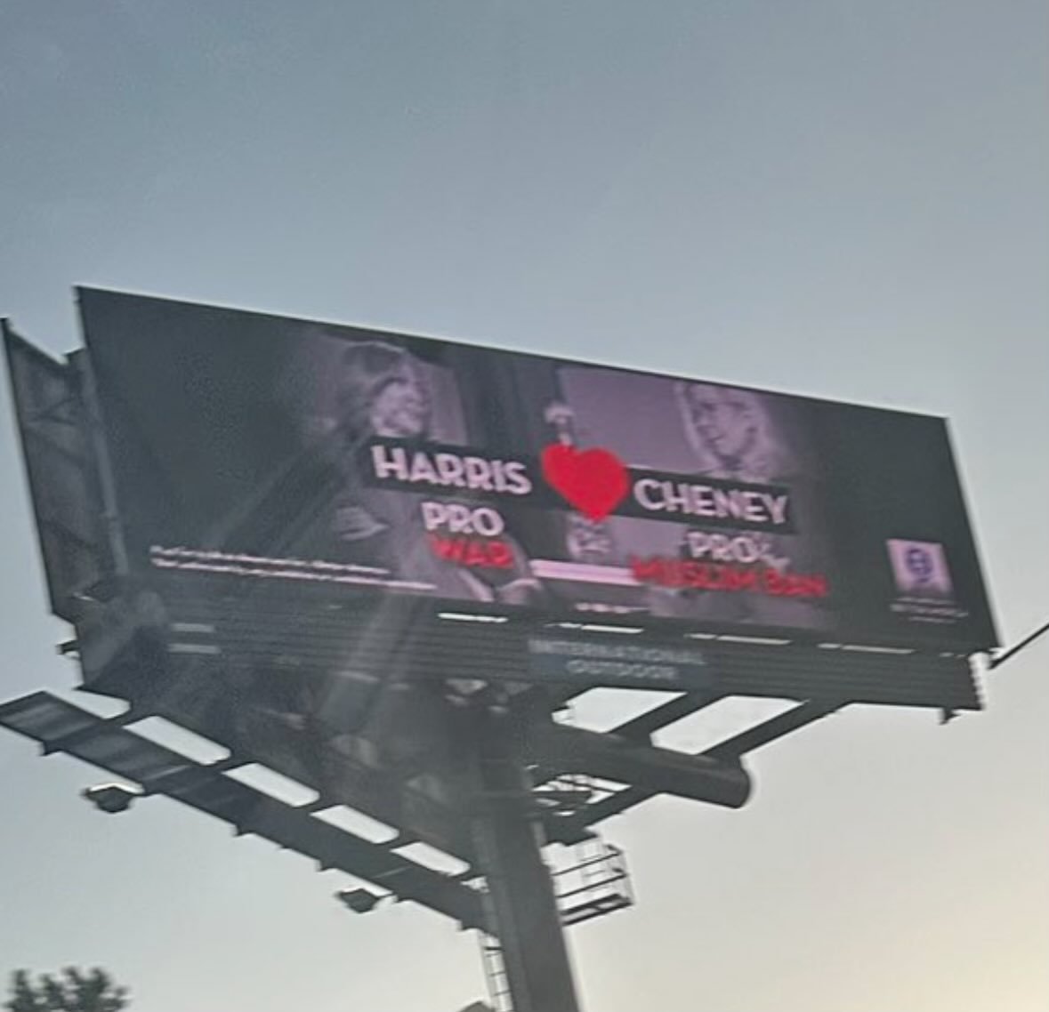 The statement criticizes media coverage and political figures, suggesting a negative portrayal of Kamala Harris and Liz Cheney. It implies that the billboard is not a smear campaign but a reflection of their actions. The tone is accusatory and dismissive of opposing views.