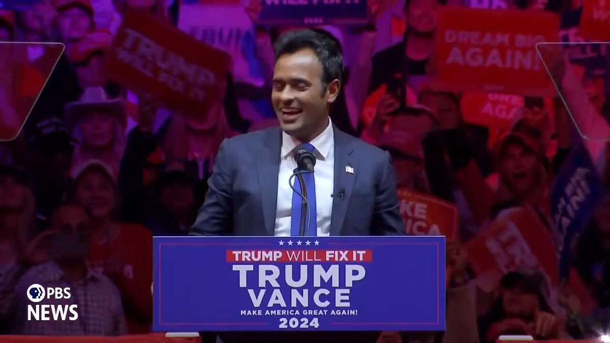 The statement is a brief mention of meeting Vivek Ramaswamy and references a conversation about New York being a swing state in the 2024 elections. It does not provide substantive engagement with public issues or contribute to civic dialogue.