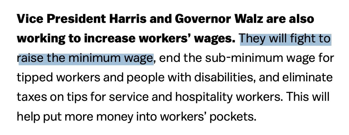 The statement questions the commitment of Vice President Harris to a $15 minimum wage, suggesting a lack of specificity in her economic platform. The accompanying image indicates a general commitment to raising the minimum wage, but does not specify the $15 figure.