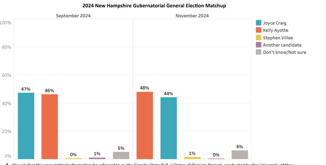 The statement and accompanying images provide information on polling data for the New Hampshire gubernatorial and presidential elections. It presents statistical data without commentary, focusing on the changes in poll numbers over time.
