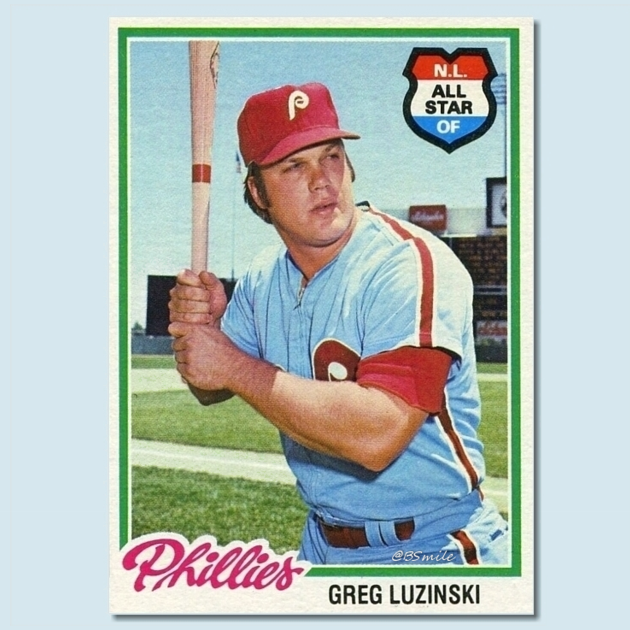 The statement is a celebratory message for Greg Luzinski's birthday, highlighting his baseball career with a classic card image. It is lighthearted and nostalgic, focusing on sports history and fandom.