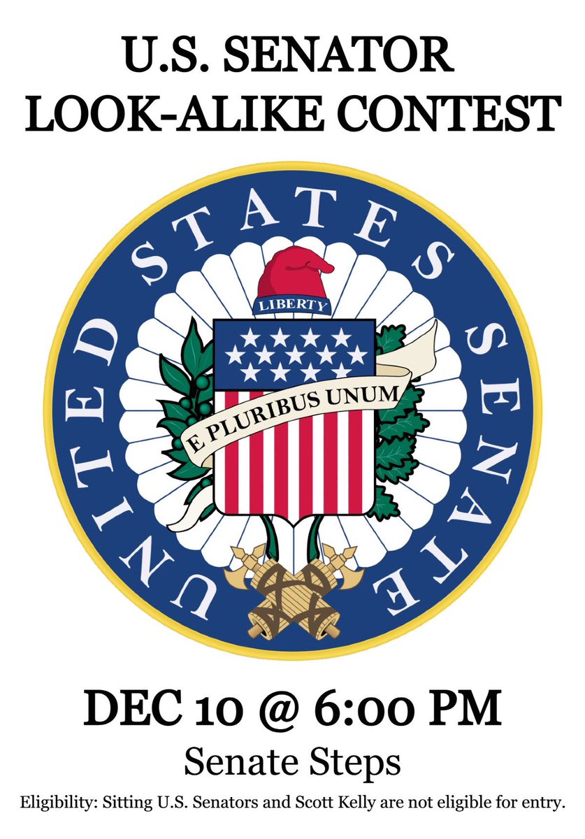 The statement is lighthearted and humorous, referencing a look-alike contest involving U.S. Senators. It does not engage substantively with public issues or debates.