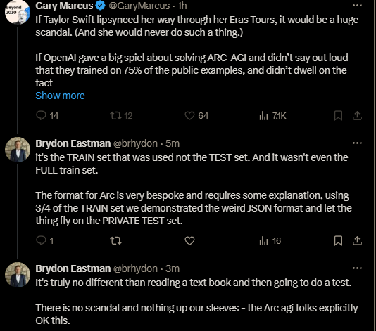 The statement and images involve a discussion about the transparency and ethics of AI training practices, referencing a hypothetical scenario involving a public figure. The conversation critiques the potential lack of disclosure by OpenAI regarding their training methods, which is a substantive public issue related to AI ethics and transparency.