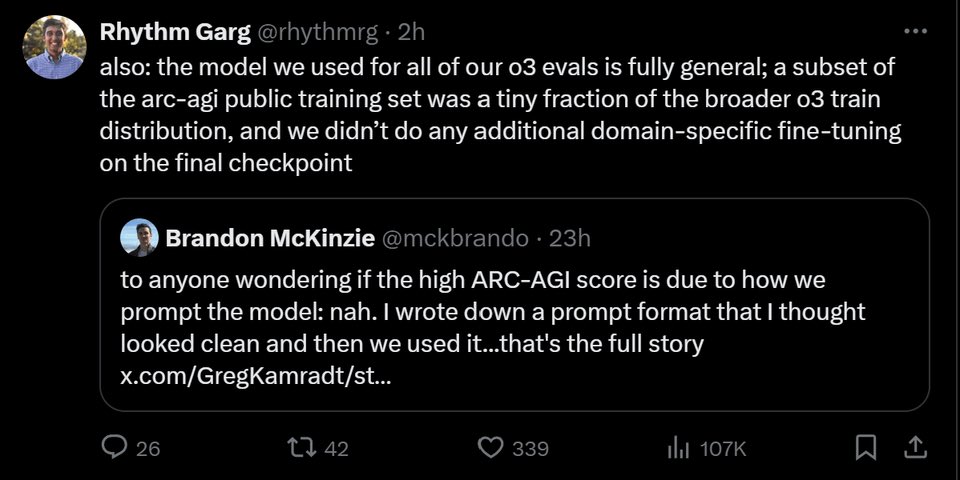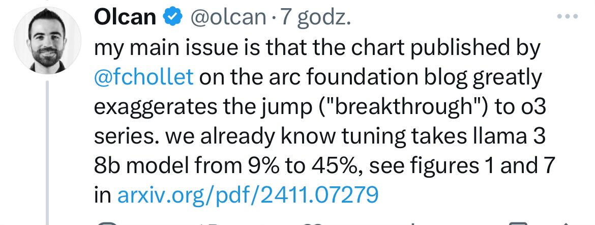 The conversation involves a technical discussion about AI model performance and evaluation methods, specifically regarding fine-tuning and test-time training. It questions the validity of performance claims and the transparency of the methods used, which are relevant to public discourse in the AI research community.
