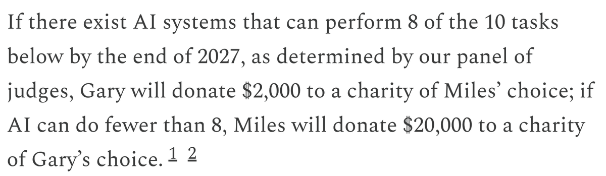 The statement is part of a public discourse on the capabilities of AI and involves a bet on AI's future performance. The tone is light-hearted and involves a friendly wager, reflecting differing opinions on AI's progress.