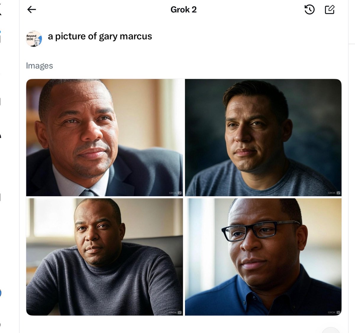 The statement discusses a technical issue with an AI image generation tool, highlighting its failure to accurately represent a specific individual. The tone is critical and points out a flaw in the system's functionality.