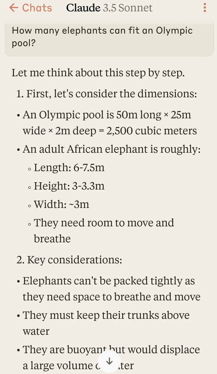 The statement is part of a discussion on AI's ability to demonstrate common sense, referencing a specific example about calculating how many elephants can fit in an Olympic pool. The tone is critical and suggests a lack of careful reading by the original poster. It engages in a technical debate about AI capabilities, which is a public issue related to technology and its limitations.