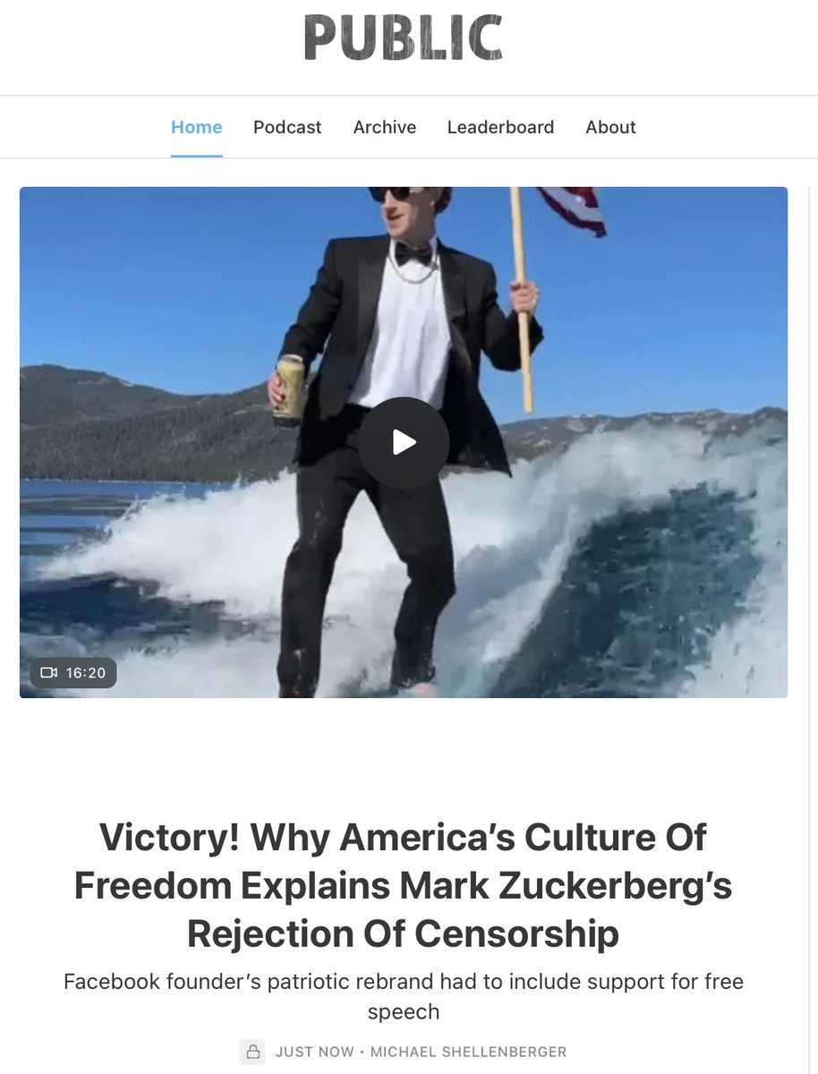 The statement discusses Facebook's stance on censorship and frames it as a victory for free speech, attributing this change to cultural values and the influence of public figures. It engages in public discourse by addressing issues of free speech and censorship, which are significant societal concerns.
