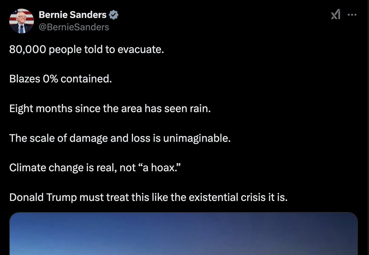 The statement engages in public discourse by addressing the causes of wildfires and attributing blame to politicians rather than climate change. It reflects a critical stance on political accountability and disaster management.