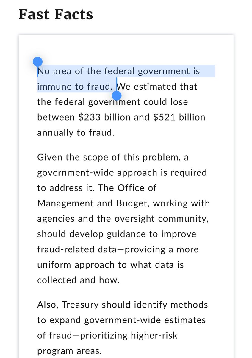 The statement engages in public discourse by addressing the issue of fraud within the federal government, referencing a GAO report to counter claims made in a media article. The tone is critical and somewhat sarcastic, aiming to highlight perceived discrepancies in media reporting.