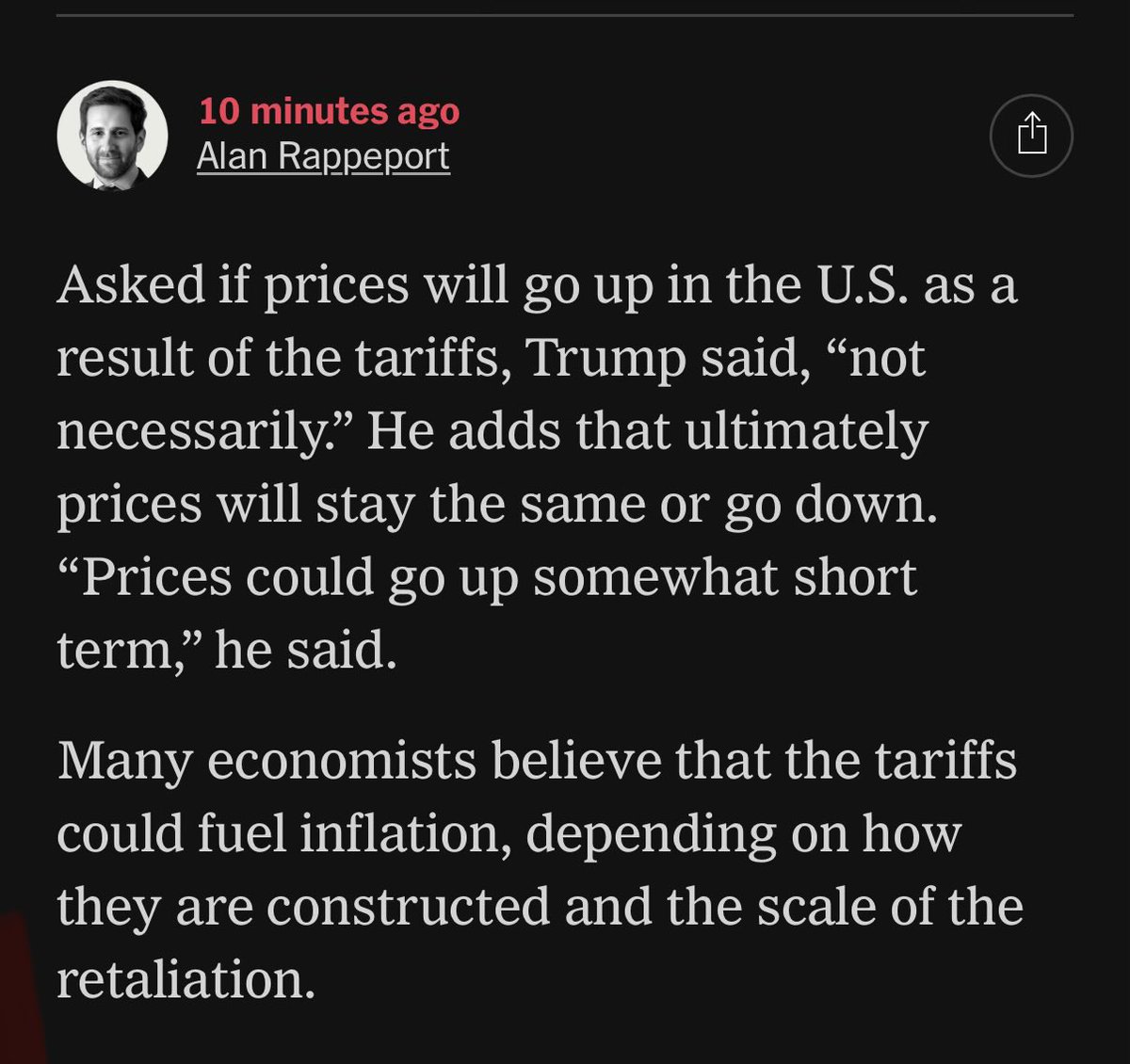 The statement and image discuss economic policies and their potential impact, which constitutes public discourse. The phrase 'very stable genius' is likely sarcastic, critiquing the individual's self-assessment and economic views.