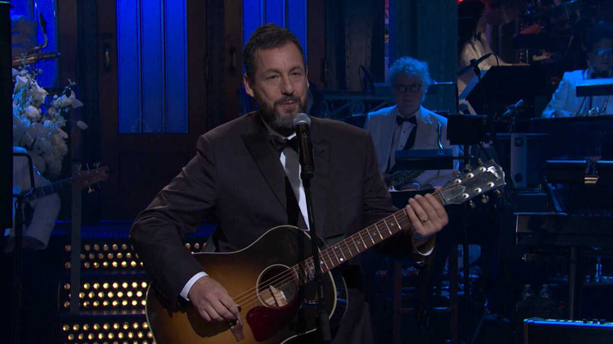The statement appears to be a promotional activity related to Adam Sandler's song for the 50th anniversary of Saturday Night Live (SNL). It does not engage substantively with public issues, debates, or discussions that contribute to civic dialogue. Instead, it seems to be a reference to entertainment content.