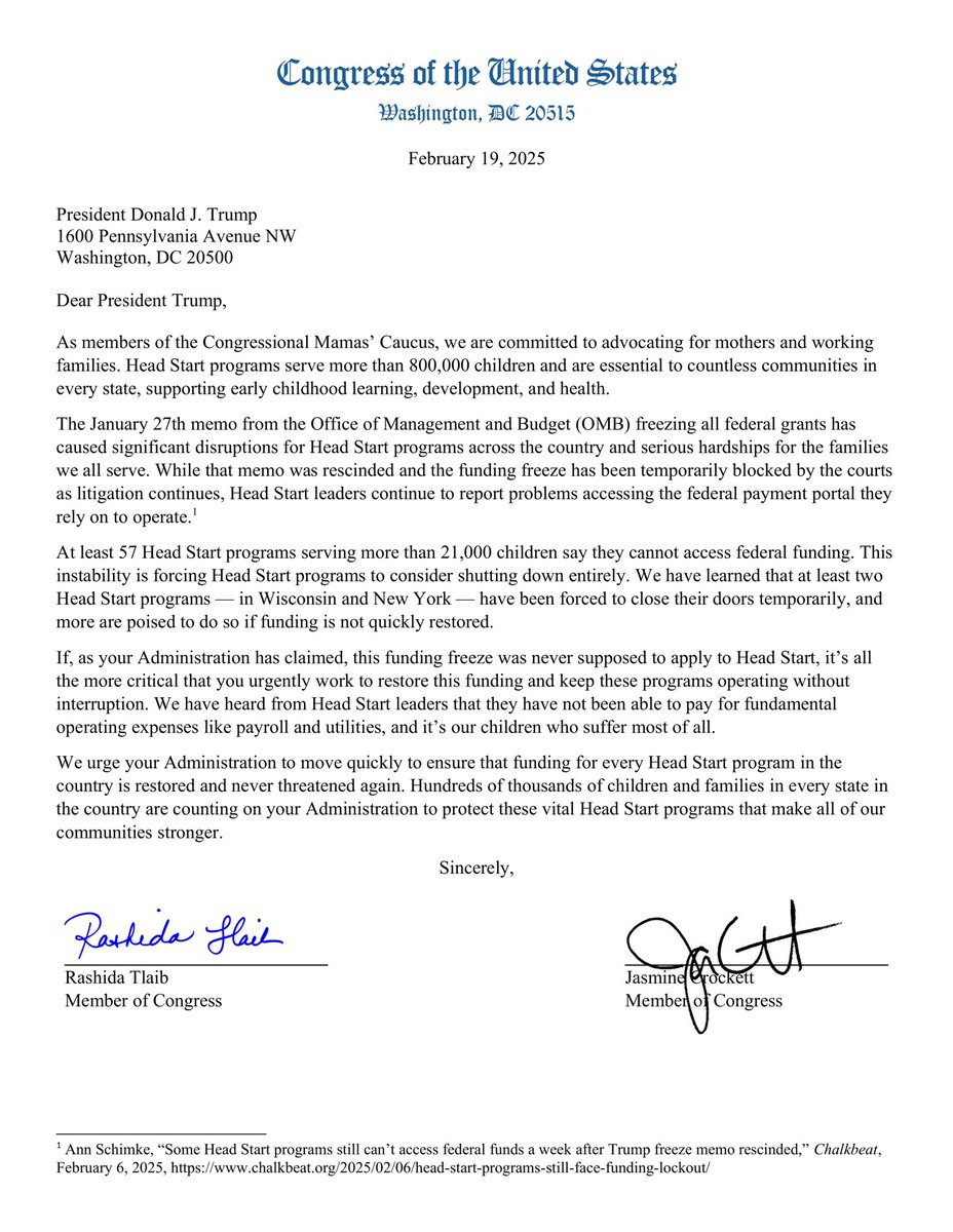 The statement and accompanying letter constitute public discourse as they address a significant public policy issue: the funding of Head Start programs. The tone is assertive and urgent, aiming to advocate for the restoration of funding to support early childhood education. The intent is to hold the administration accountable and to protect vulnerable communities.