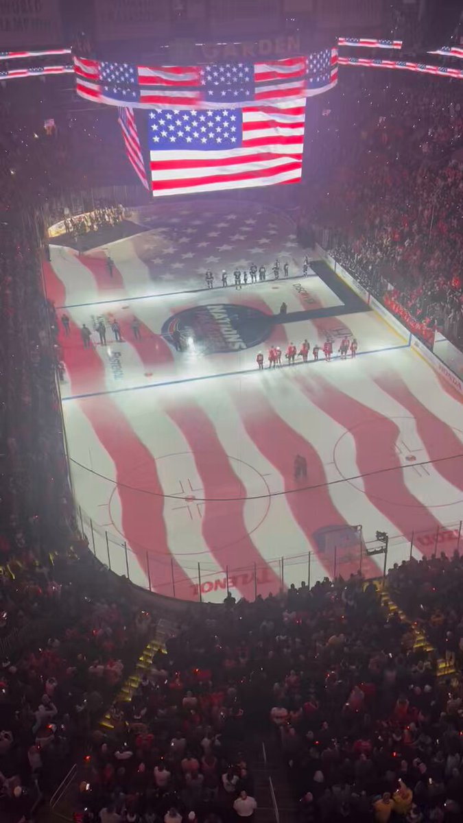 The statement describes a personal experience at an event where the US National Anthem was sung by the entire arena. It does not engage with public issues, debates, or discussions that contribute to civic dialogue. The link to 'x.com' does not provide context to suggest it addresses public issues or policies.